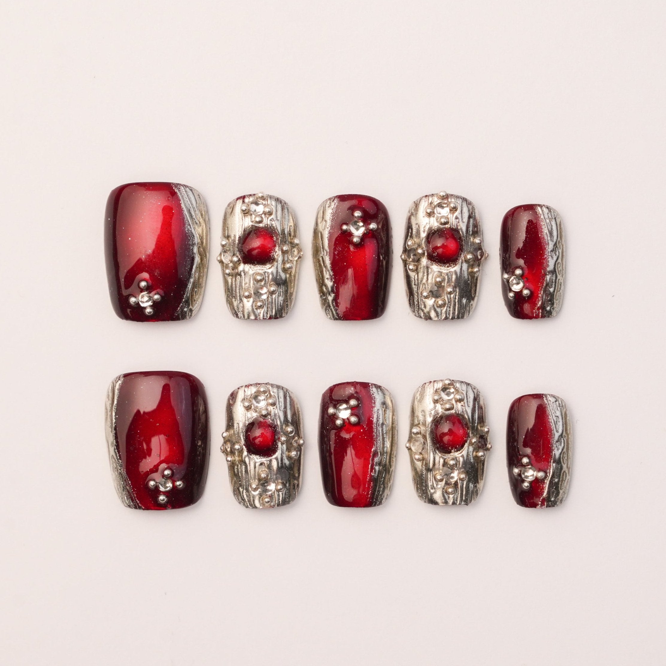 Presentamos las uñas cortas Chrome Burgundy , un sofisticado conjunto que combina el intenso y profundo tono borgoña con un elegante acabado cromado. Estas uñas cortas ofrecen un look audaz y refinado, perfecto para quienes buscan una manicura elegante y versátil.
