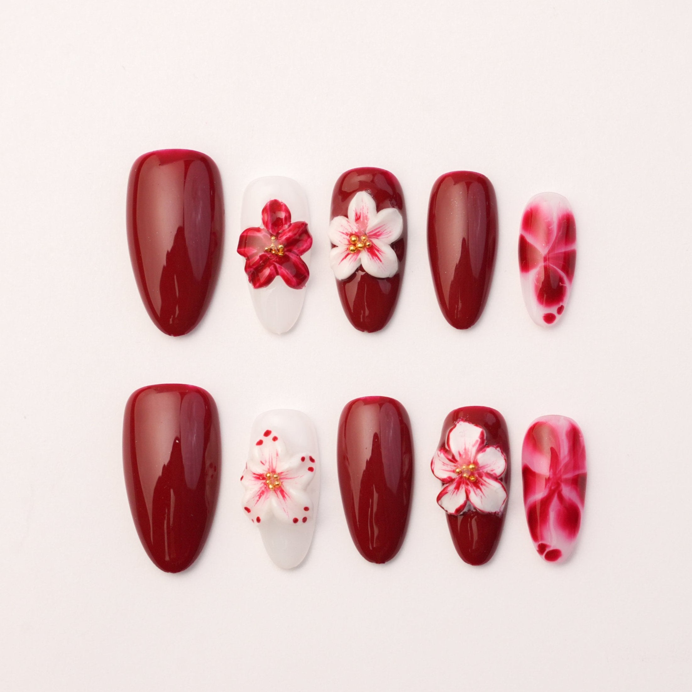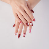 Las uñas postizas "Flamenco" capturan la pasión y el dramatismo de este icónico baile con impactantes tonos rojos y negros. Hechas a mano para lograr elegancia y estilo, estas uñas son perfectas para añadir un toque atrevido y fogoso a tu look.
