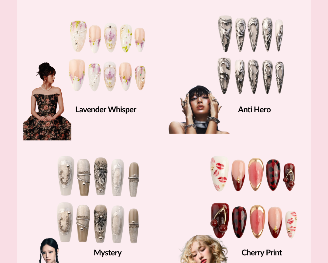 "Rose Garden" es un conjunto romántico con suaves tonos ruborizados, delicados detalles florales y un sutil brillo que captura la esencia de un jardín floreciente. Perfectas para las amantes de la elegancia y el encanto, estas uñas aportan un toque de belleza atemporal a tus dedos.