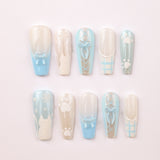 Los usé durante aproximadamente 3 semanas y recibí muchos elogios porque son muy hermosos. A la novia de mi hijo le encantaron, pero se molestó porque tiene las uñas cortas y toca el piano. Le dije que tienen uñas cortas solo para ella. ¡A ella también le encantan!