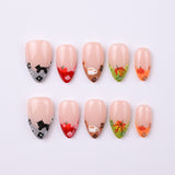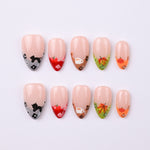 A nude base carries tiny hand-painted motifs—black cats, apples, coffee cups, pumpkins, and maple leaves. Each nail tells a warm story of fall days and coffee breaks. Ideal for cozy sweaters and pumpkin-spice lovers.