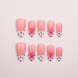 Playful polka dots meet vibrant pink floral accents for a fun spring look. The contrasting black dots add a touch of retro charm. A cheerful set that instantly brightens your day.