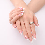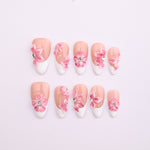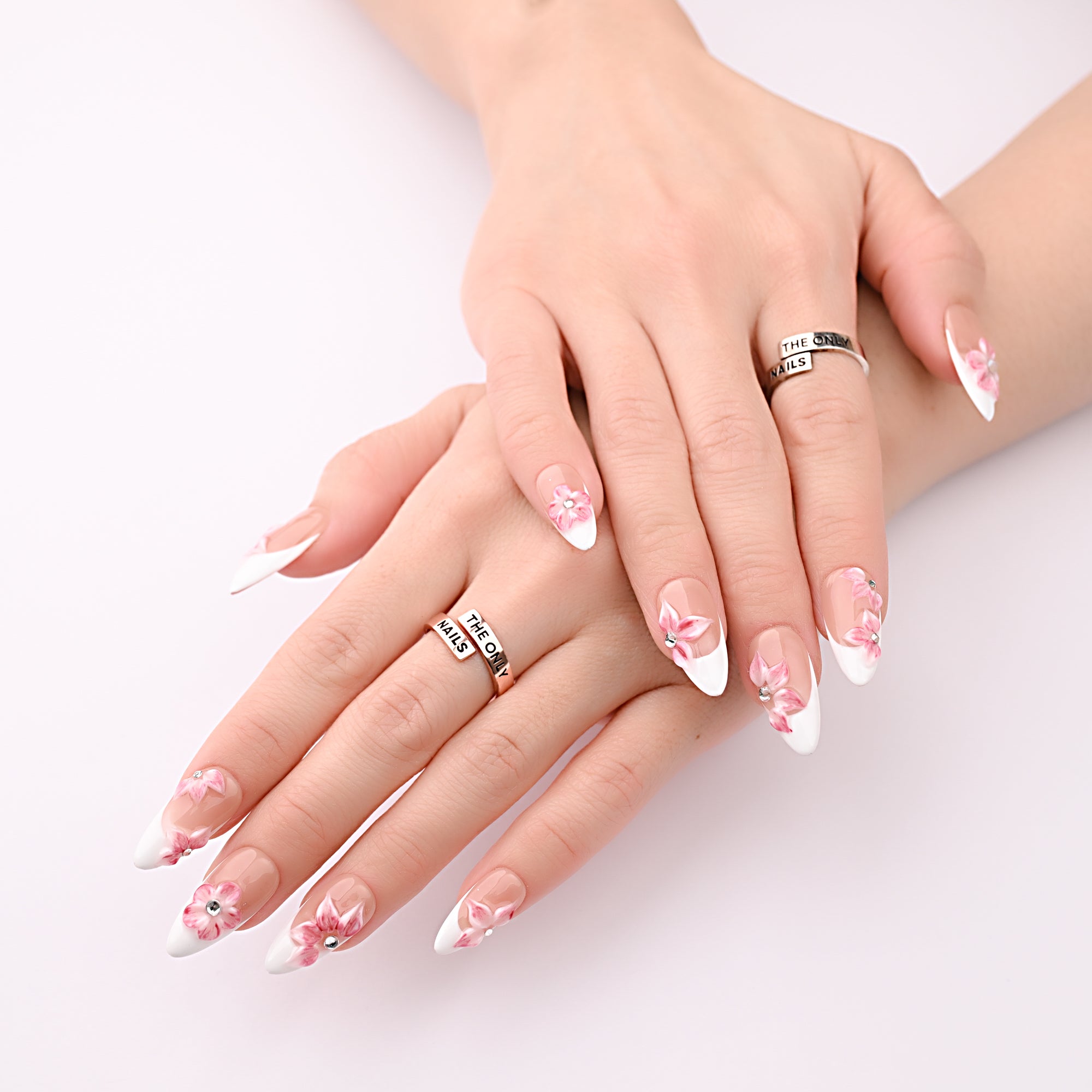 A delicate pink ombré with sculpted 3D blossoms for a soft romantic finish. The gradient effect elongates the fingers while the florals add dimension. Sweet, graceful, and ultra-feminine.