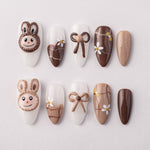 Brown Bubu is a cozy and whimsical set of handmade press-on nails inspired by the beloved Labubu character, featuring rich brown tones and playful details. Perfect for those who adore a mix of cuteness and warmth in their nail designs.