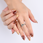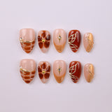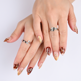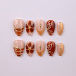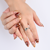 Warm caramel tones blend with nude pink and golden accents for a cozy, elegant finish. The floral and starburst designs add a hint of vintage charm. Ideal for autumn days and chic neutral outfits.