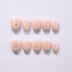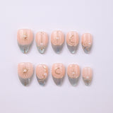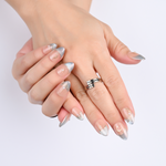 A nude-silver gradient finished with golden starbursts, crescent moons, and petite pearls. Every detail feels refined and radiant, like jewelry for your fingertips. Elegant for both everyday glam and formal occasions.