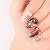 Dark romance meets metallic glam in Cherry Steel. Featuring deep cherry red, silver vein accents, and 3D crystal butterflies, this design blends soft femininity with bold, gothic vibes. Perfect for adding drama and elegance to any look.