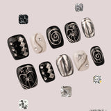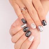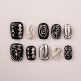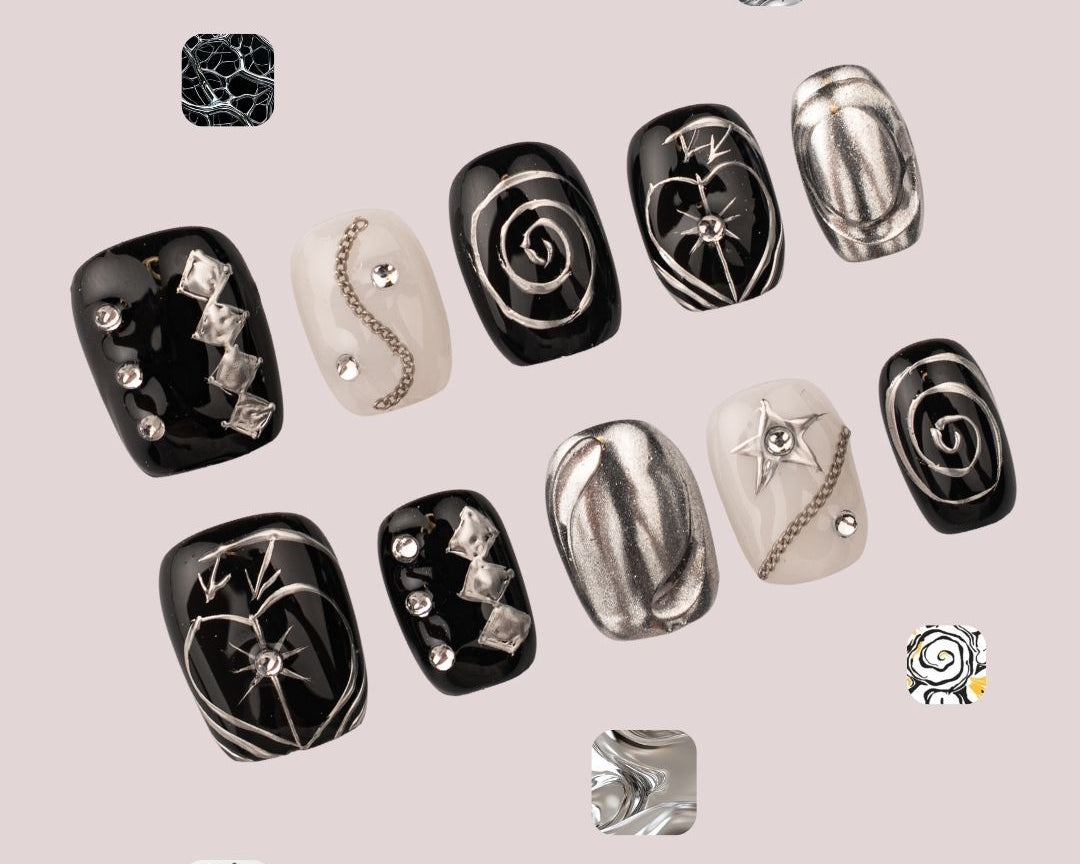 Sleek. Bold. Iconic. Chrome Black Short combines black lacquer bases with silver chrome details, chain accents, and geometric star patterns for a daring, high-fashion look. Designed for those who want a modern edge without losing elegance.