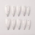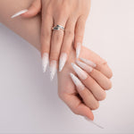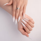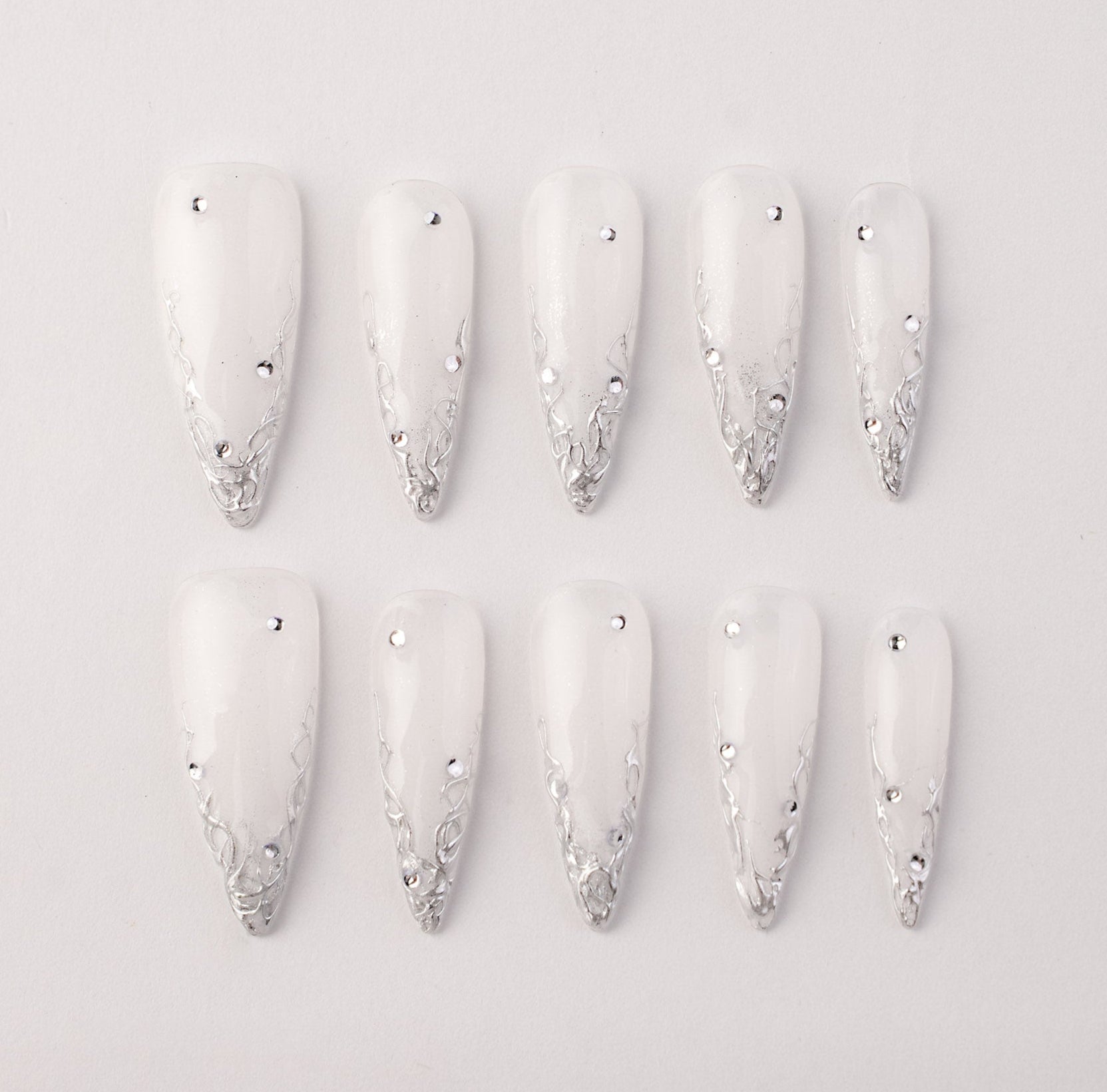 An ethereal white base crowned with delicate silver vines and crystals. This design evokes the elegance of a snow queen’s silent command.