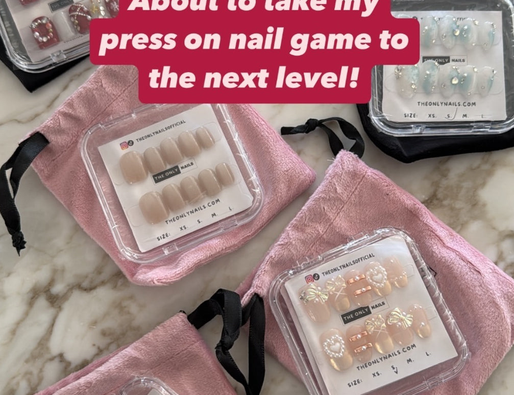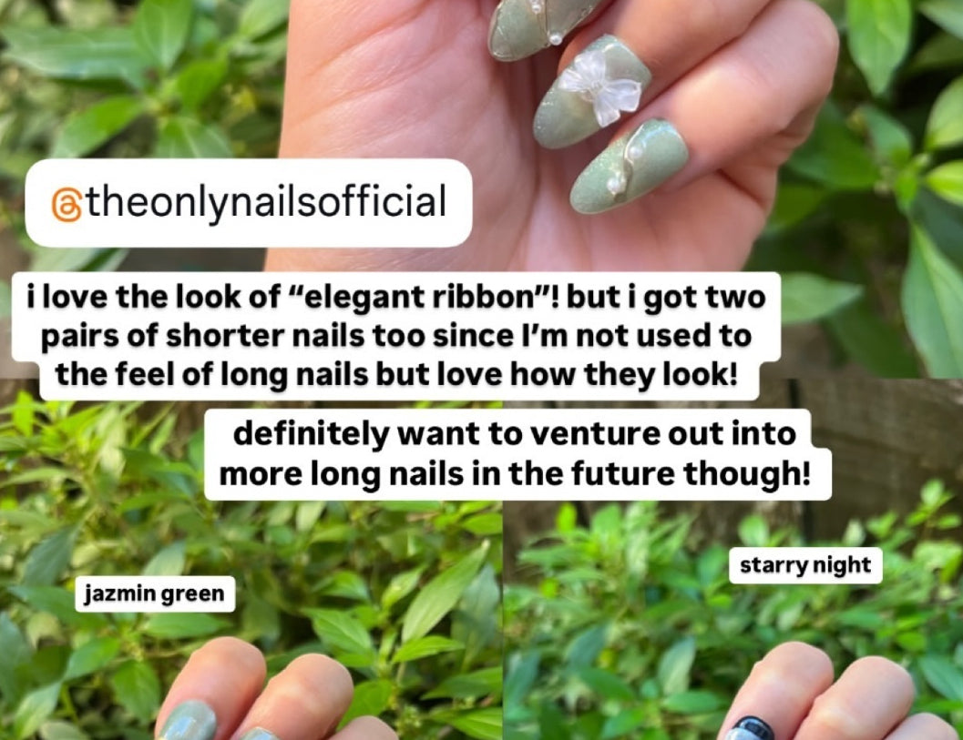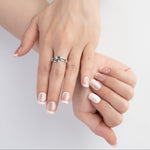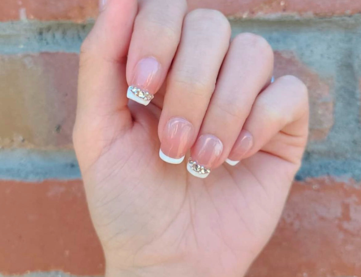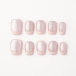 A fresh take on French tips in a modern short square shape. With a thumb nail length of approximately 15mm, these sets are comfortable, lightweight, and perfect for everyday elegance.