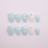 Cool blue tones and pearlescent details create a serene ocean-inspired design. Subtle shell textures and crystal accents add elegance and depth. A perfect set for those who love calm, refreshing colors.