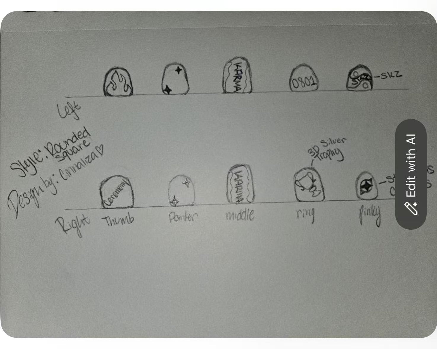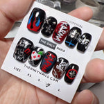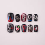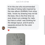 A fierce Stray Kids–inspired design that channels the bold energy of the Karma album. Featuring flames, chrome stars, graffiti-style lettering, and edgy motifs like broken hearts and chains, this set embodies rebellion and raw power. Red, black, and silver tones collide with bold accents—perfect for showing off fearless confidence and unshakable style.