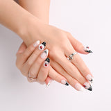 Classic black and white tones are elevated with playful polka dots, delicate bow linework, and glossy 3D ladybug accents for a refined yet whimsical look. Handcrafted floral details add dimension while keeping the design elegant and balanced. Ladybug Couture is perfect for those who love timeless contrast with a touch of charm and couture-level detail.
