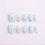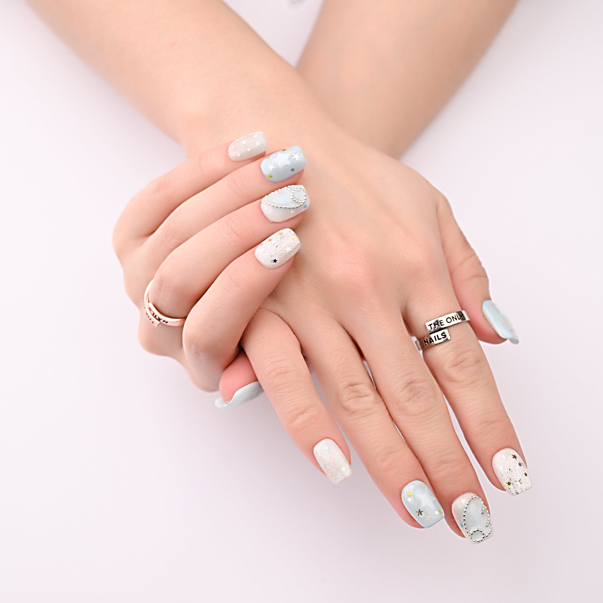 Soft mint tones meet dreamy cloud textures for a fresh spring look. Delicate star accents add a subtle sparkle that feels light and playful. Perfect for bringing a calm, airy vibe to everyday outfits.