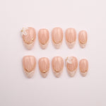 Warm nude tones paired with delicate gold accents for effortless sophistication. The soft shine adds just the right amount of glamour. A refined set designed for everyday elegance.