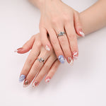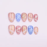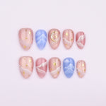 Dreamy pink tones with touches of lavender and soft shimmer create a magical sky effect. Tiny stars and flowing lines add a whimsical celestial feel. A romantic design perfect for dreamy spring moods.