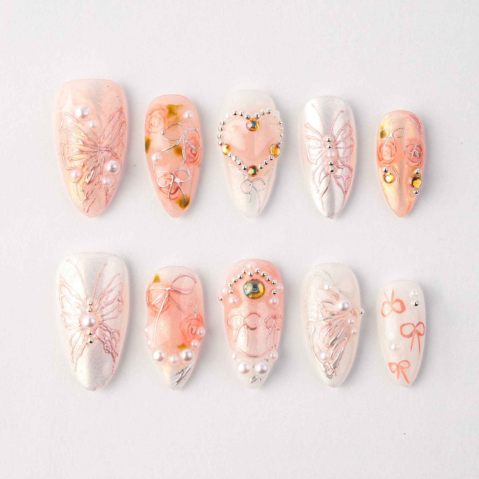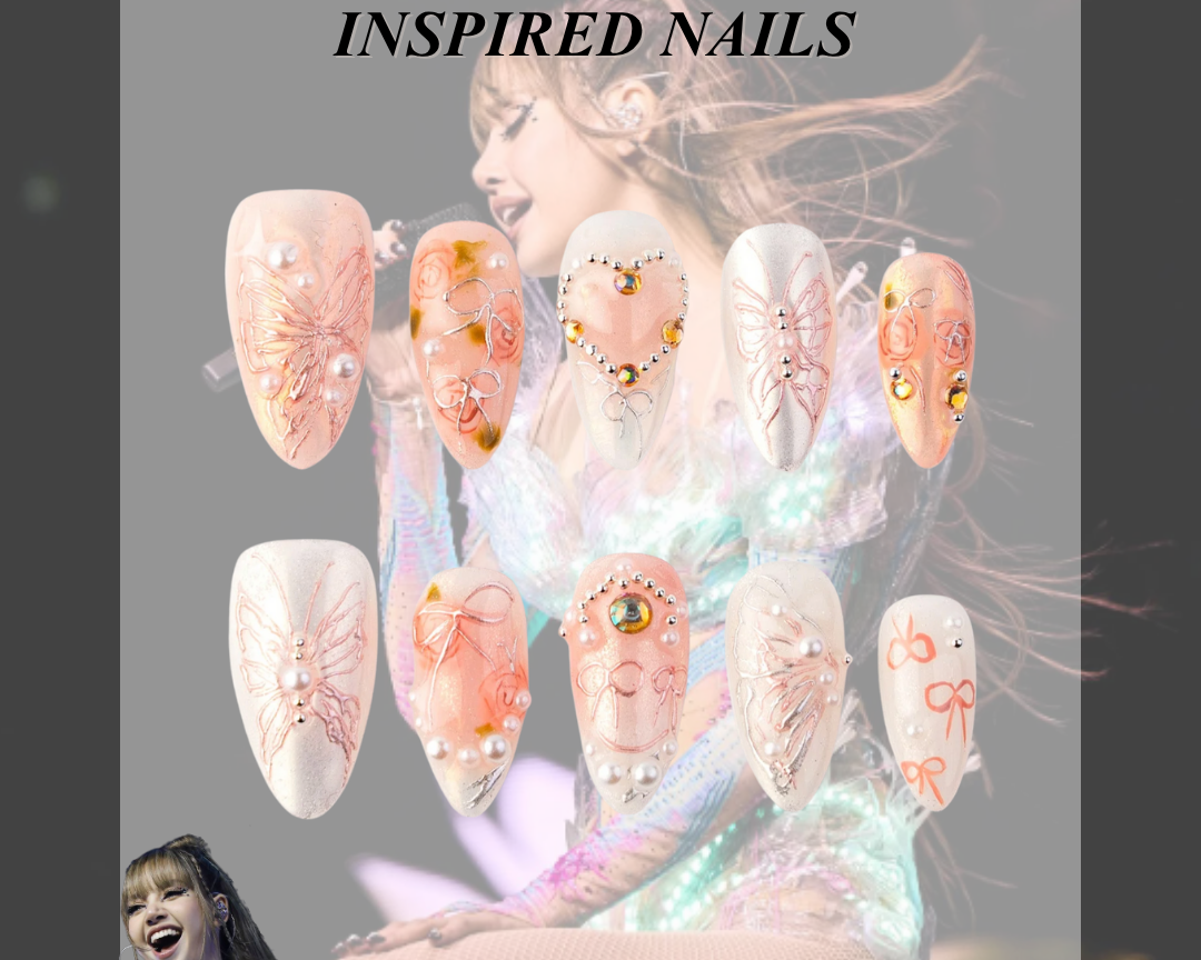 Delicate yet dazzling — Rose Garden mirrors Lisa’s dreamy stage presence with ethereal butterflies, pearls, and soft pastel shimmer. Sweet bows and whimsical sparkle bring this fantasy set to life. A fairytale in every fingertip.