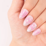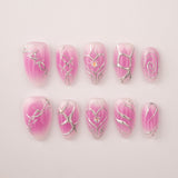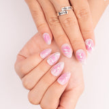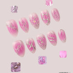 Soft meets futuristic in Rose Quartz Chrome. Featuring a pink ombré base with chrome vein accents and delicate crystal embellishments, this set is a dreamy balance of femininity and modern art. Ideal for elevating any outfit with subtle glam.