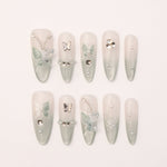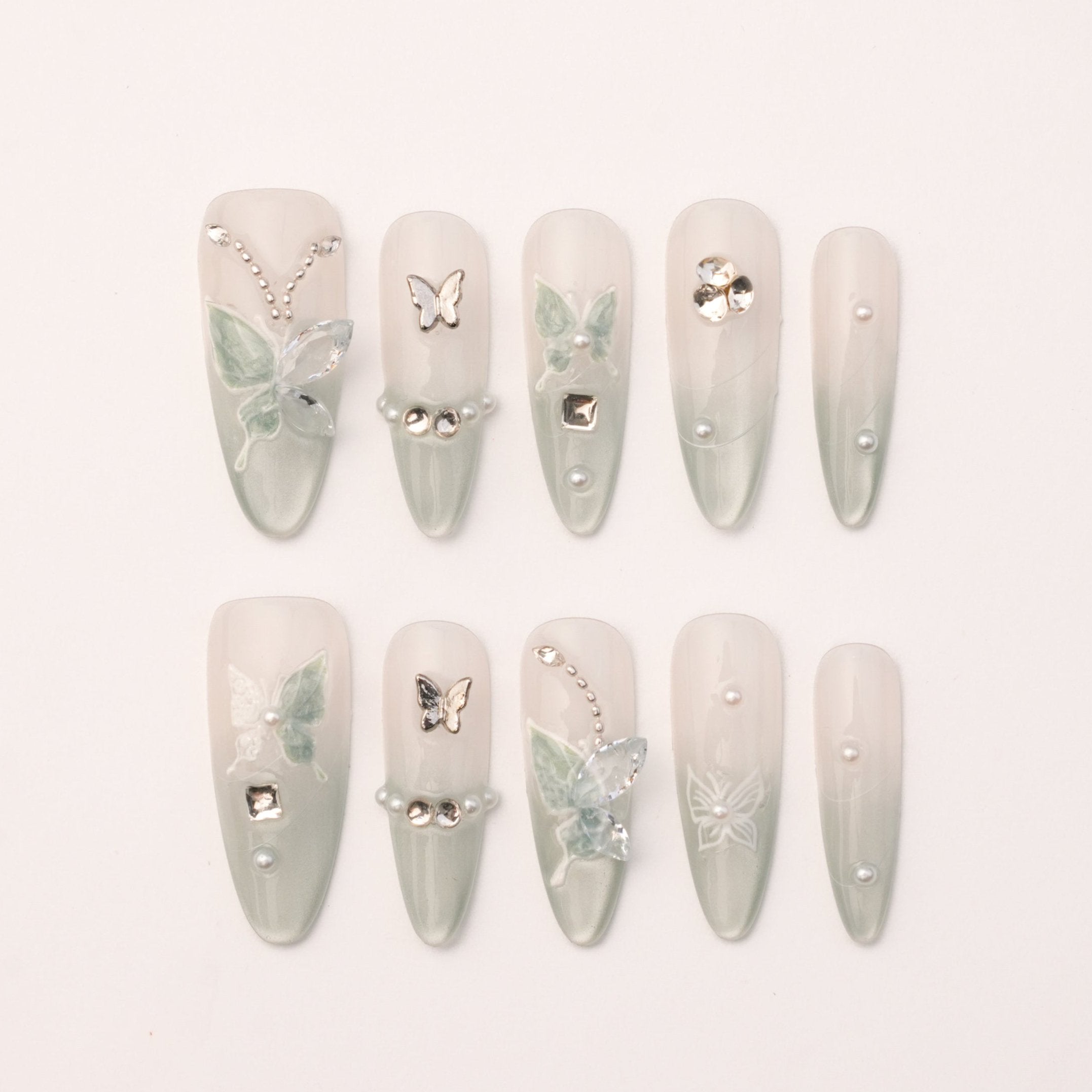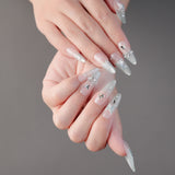 Introducing Silver Stiletto, a striking set of handmade press-on nails featuring a sleek, metallic silver finish and a sharp stiletto shape. These bold and edgy nails are designed to make a statement, adding a touch of glamour and sophistication to any look.