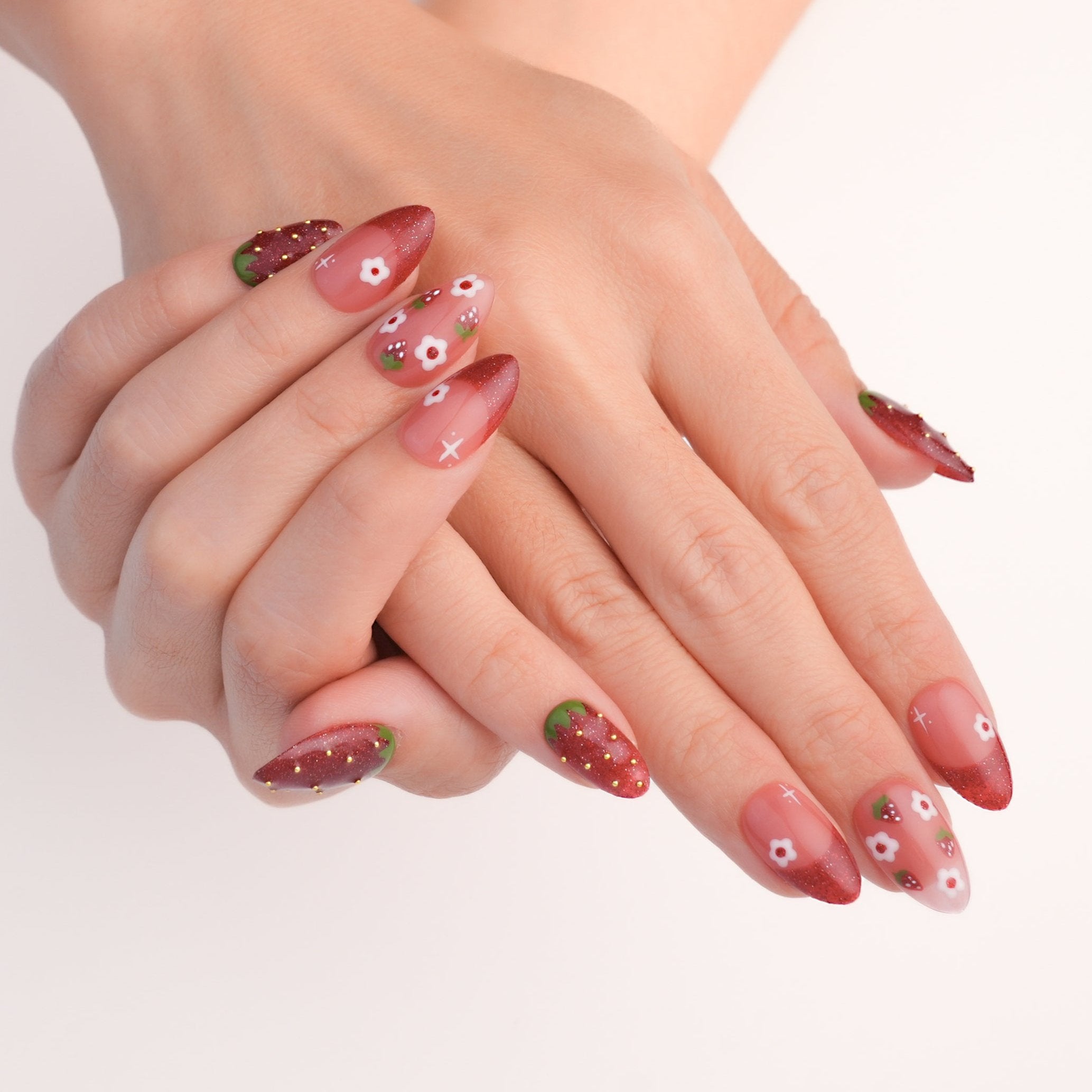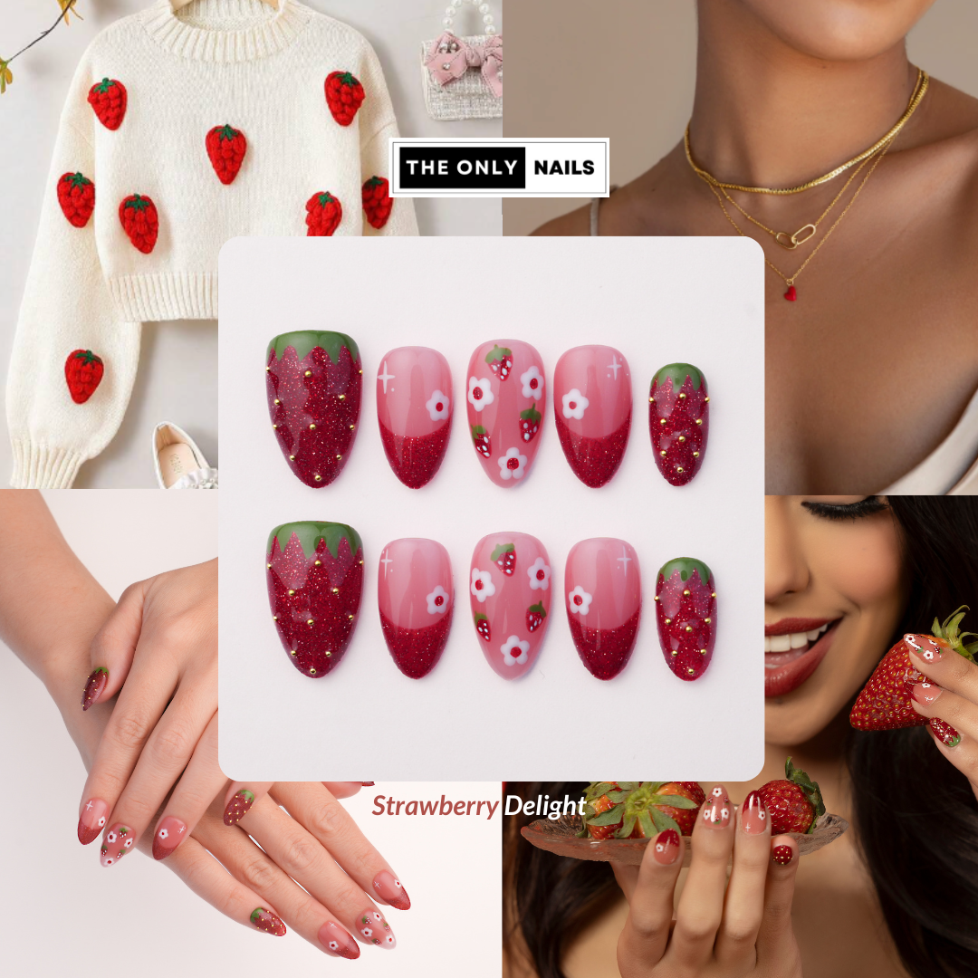 Sweeten up your look with these adorable handmade press-on nails! Featuring a delightful mix of cute strawberries and delicate white flowers, this set is perfect for anyone who loves a fresh, playful vibe. With its soft color palette and intricate designs, "Strawberry Delight" will add a touch of charm to your everyday style.